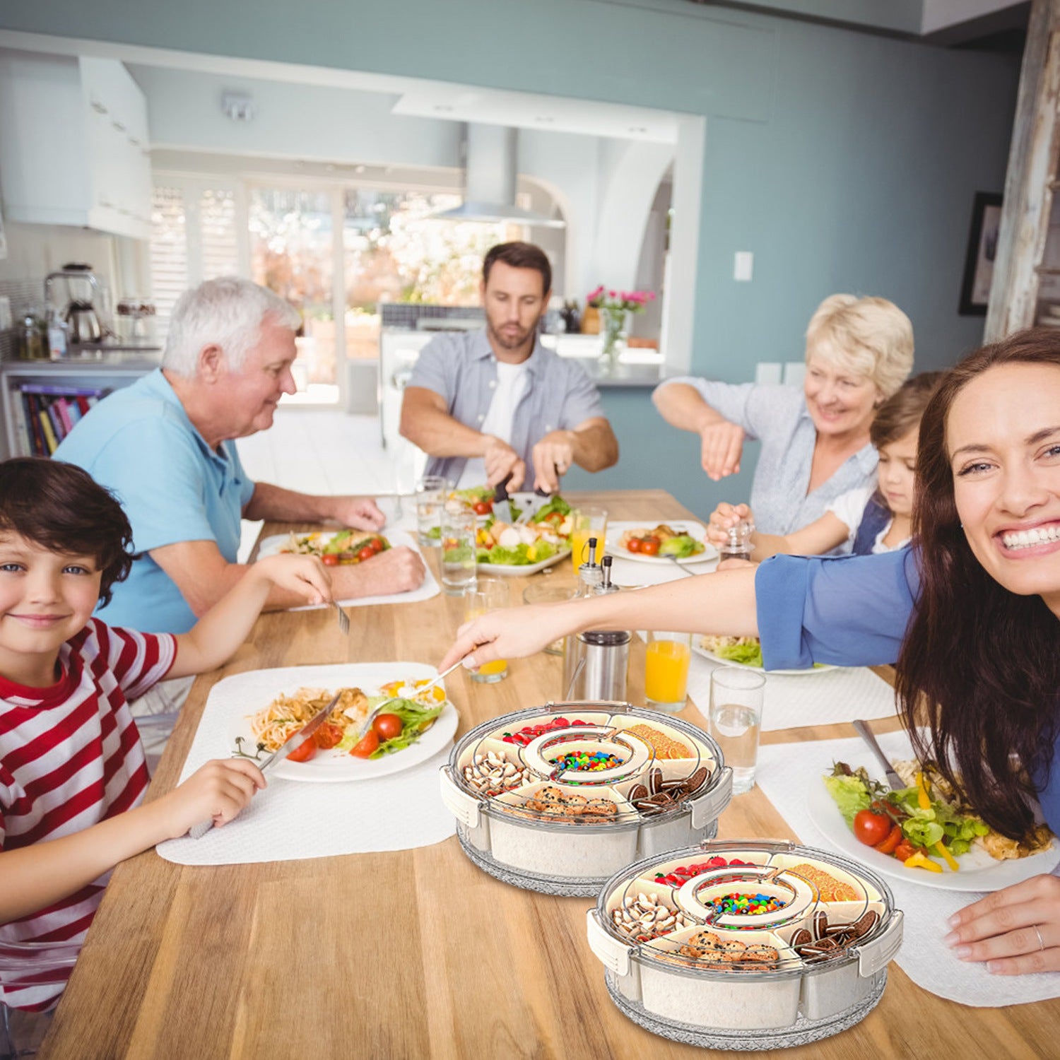 2Pcs Divided Serving Tray with Lid